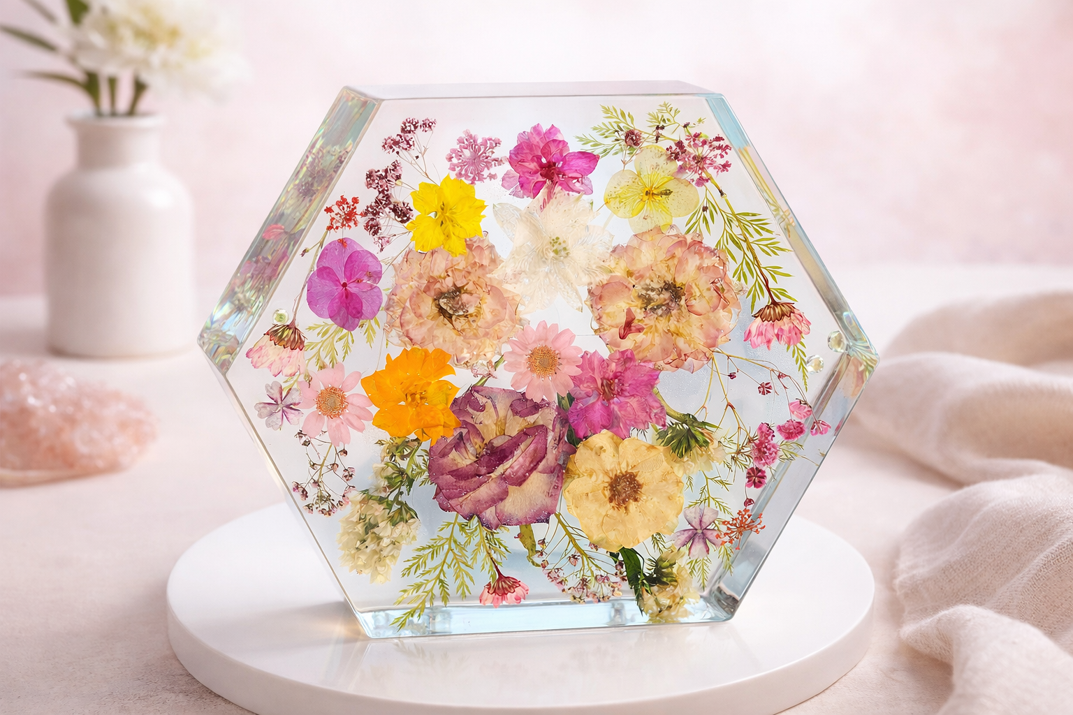Preserve your most meaningful moments forever with a custom 9″ resin flower preservation block. Whether from a wedding, funeral, anniversary, or special event, your real flowers are carefully dried, arranged, and encased in a crystal-clear, high-end resin to create a timeless keepsake.