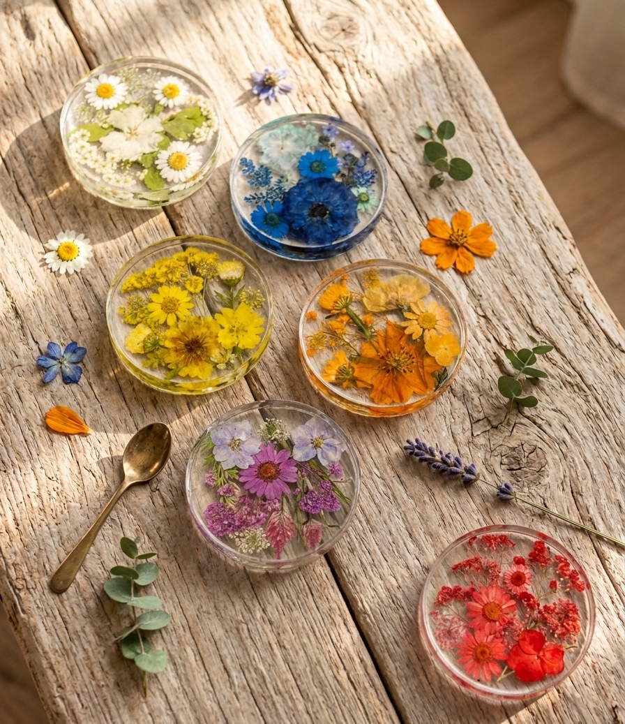 Each coaster is handcrafted with care. Your flowers are professionally dried, thoughtfully arranged, and encased in crystal-clear, high-end resin—creating a cohesive set that is both elegant and deeply personal.
