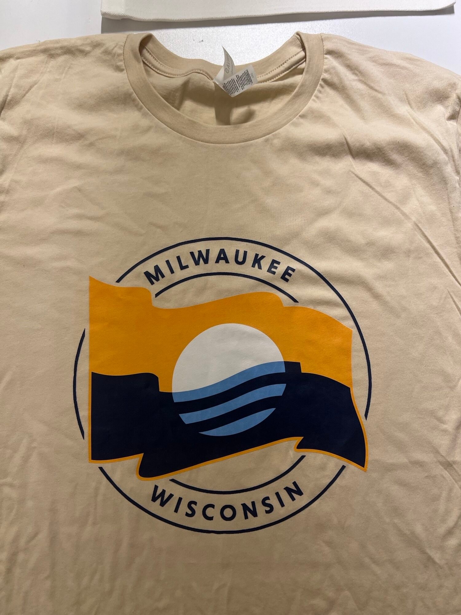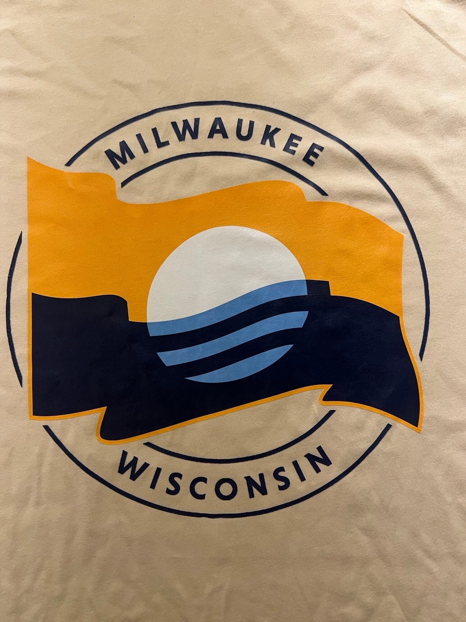 This design features the modern Milwaukee flag in a bold, circular “stamp” style, celebrating the city’s bright future and its beautiful Lake Michigan shoreline.